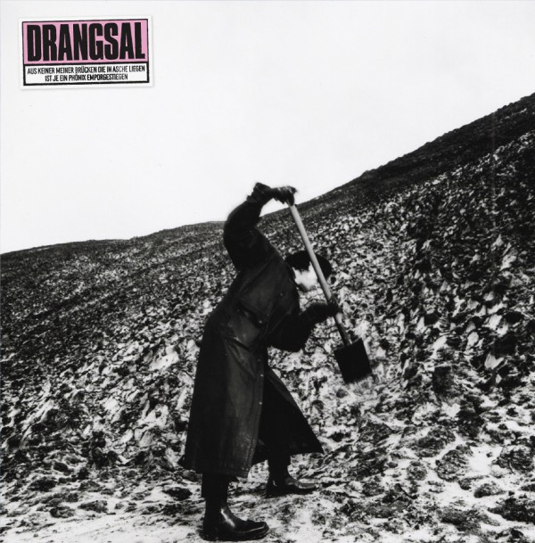 Vinyl and CD packaging for the album "Aus keiner meiner Brücken, die in Asche liegen, ist je ein Phoenix emporgestiegen" by rock band Drangsal.